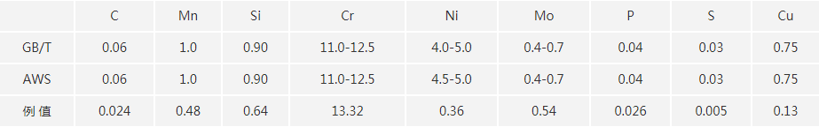 1.鈦鈣型馬氏體不銹鋼用手焊條,主要成分是11.5%Cr-4.5%Ni-0.55%Mo