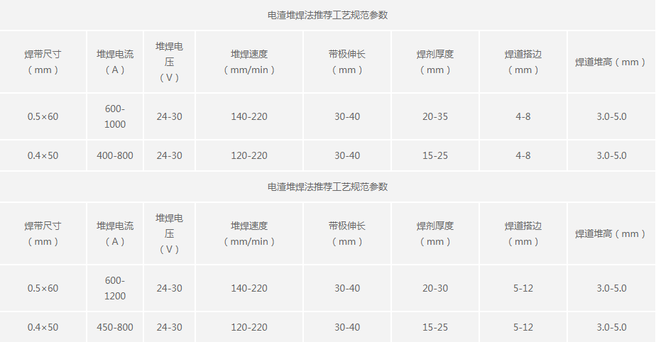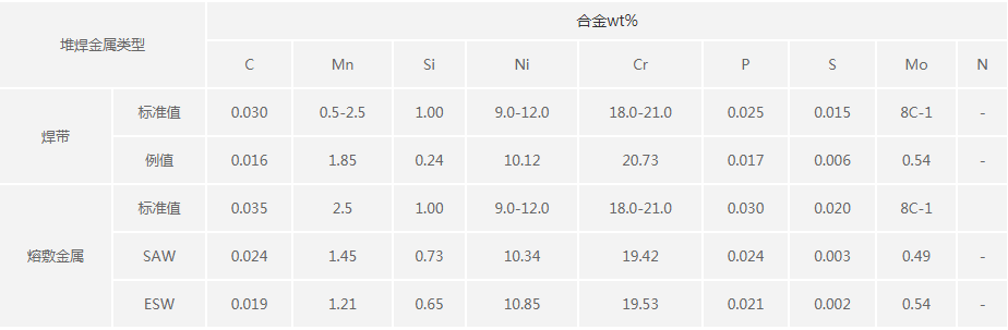 主要成分是低C-19Cr-9Ni-0.5Nb,為奧氏體不銹鋼焊帶;電弧堆焊時配合SJ305焊劑使用;電 渣堆焊時配合SJ15B焊劑使用。熔覆金屬雜質元素S、P等含量低,機械性能好。 焊劑工藝 性能好,堆焊過程穩定,脫渣容易,焊道表面光滑、熔合良好,稀釋率較低。